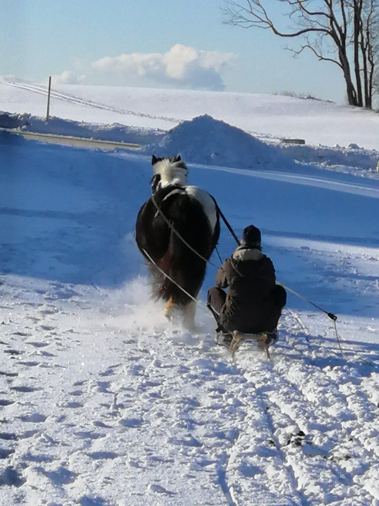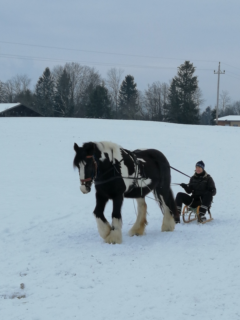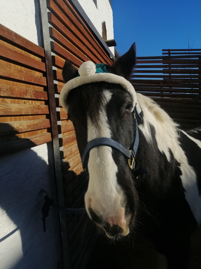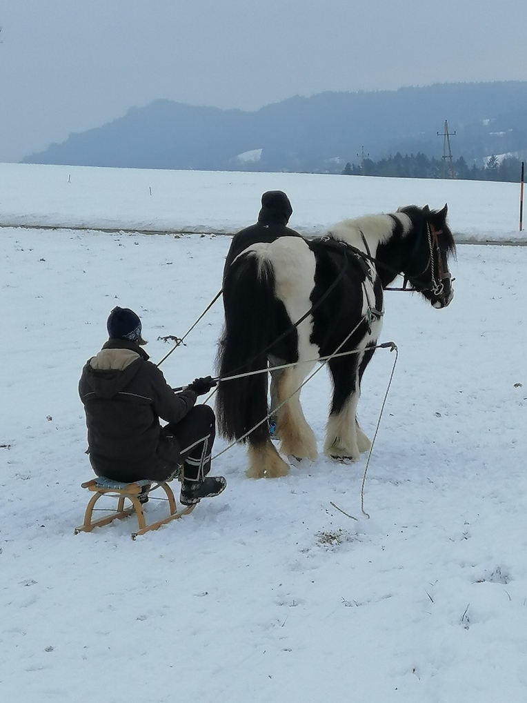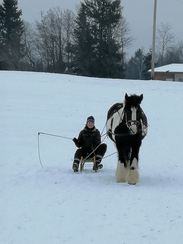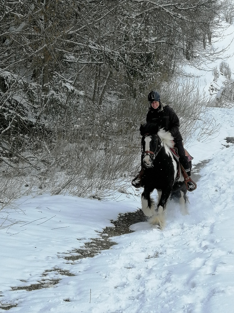 Shaina wurde für eine Tinkerstute zum erstaunlich guten Dressurpferd, liebt Ausritte, ist kindersicher und macht jeden Spaß mit, wie hier zu sehen ist.